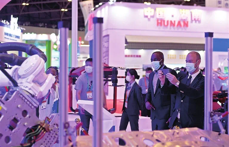 离开湖北展区,几步走进湖南展区,看看“建设现代化新湖南”的进行时。